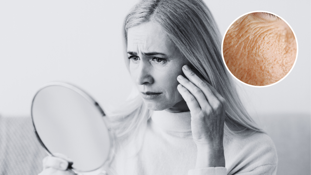 3. Hialurono rūgštis (drėkintojas) taip pat mažėja. O be jos – oda nebeišlaiko drėgmės taip kaip anksčiau. Rezultatas? Sausa, plona, glembanti oda.