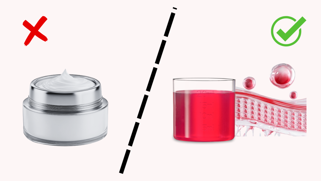 Kai tepate veidą kolageno turinčio kremo – jis lieka tik ant viršutinio odos sluoksnio (epidermio). Bet tikroji problema yra giliuose sluoksniuose – dermyje, kur ir vyksta kolageno skilimas.